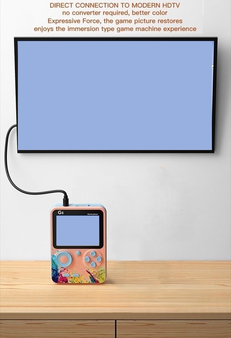 Bring the arcade to your pocket with the G5 Handheld Retro Gaming Console. Featuring a vibrant 3-inch LCD screen and over 500 built-in classic games, the G5 is your ticket to endless entertainment on the go. With its eye-catching splash design and compact build, it’s perfect for kids and adults who love old-school gaming fun.